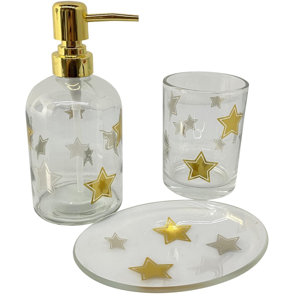set de baño tres piezas, dispensador jabón líquido,vaso agua,jabonera barra.