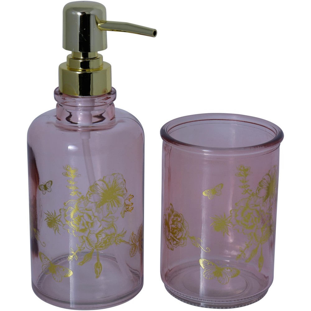 Juego de baño 2 piezas, dispensador de jabón líquido , vaso de agua.