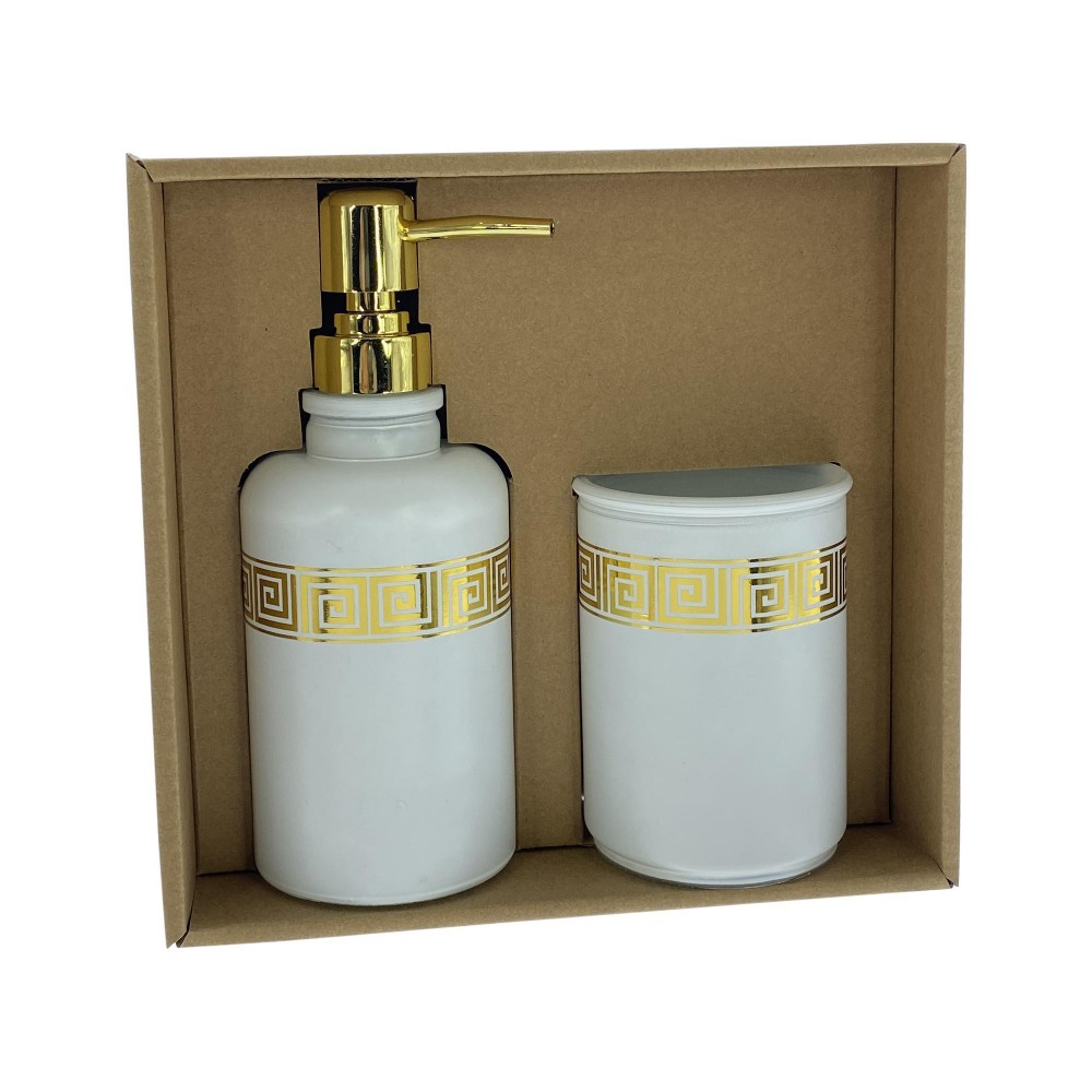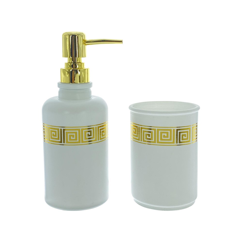 juego baño 2 piezas , dispensador jabón, vaso de agua.