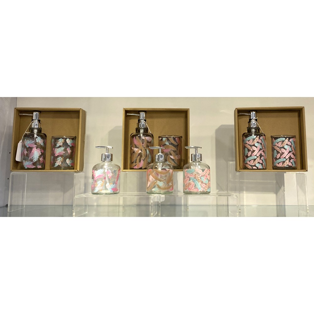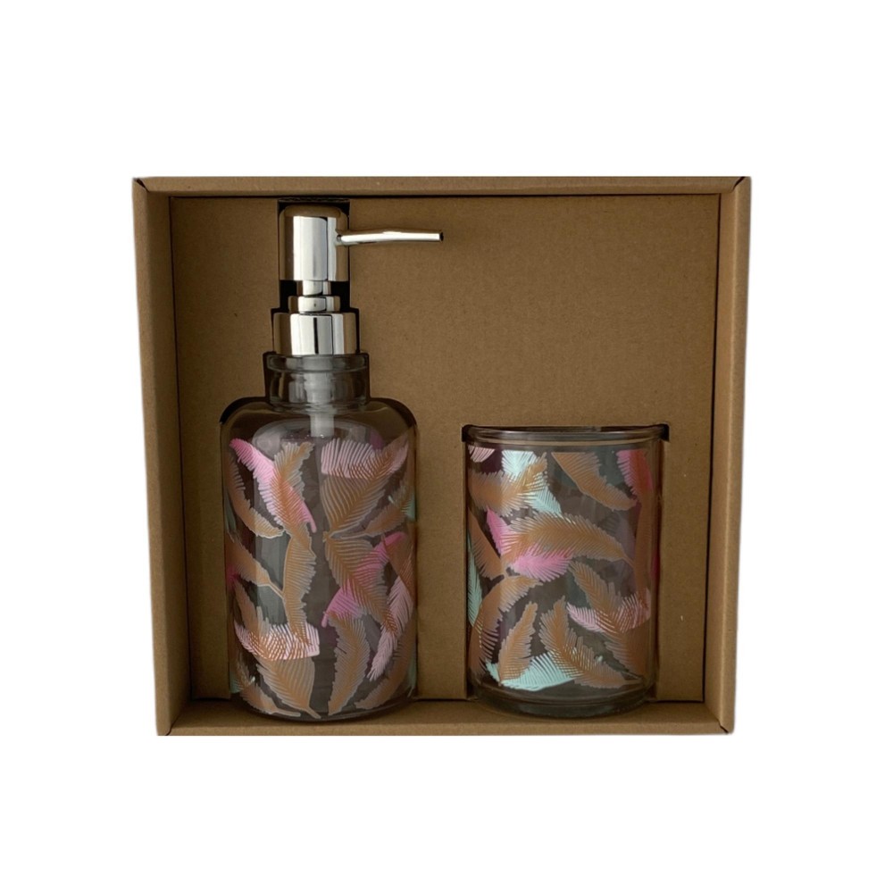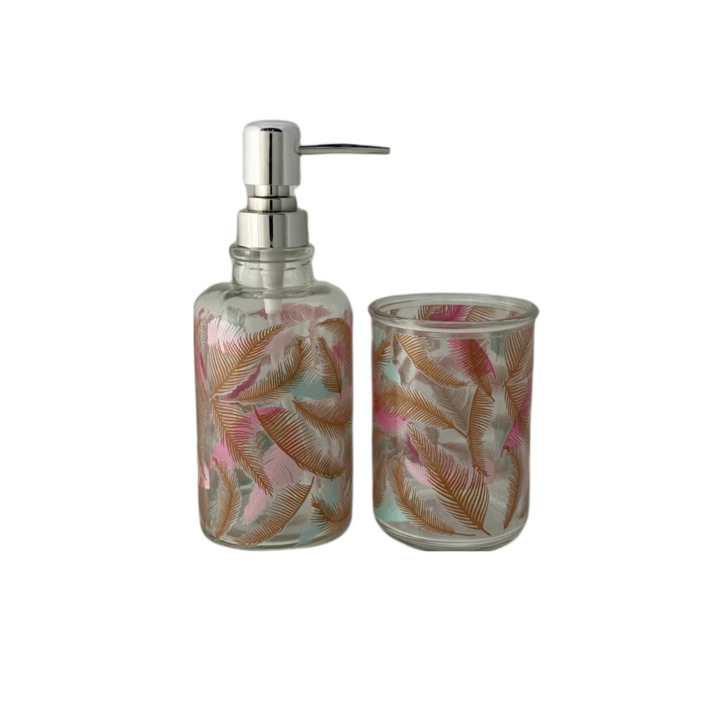 juego baño 2 piezas , dispensador jabón, vaso de agua.
