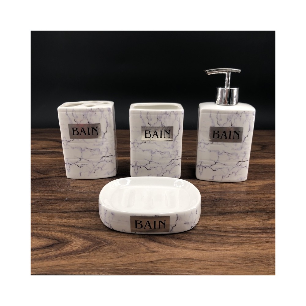 juego de baño 4 pzs , dispensador jabón líquido, vaso agua, portacepillos, jabonera barra.