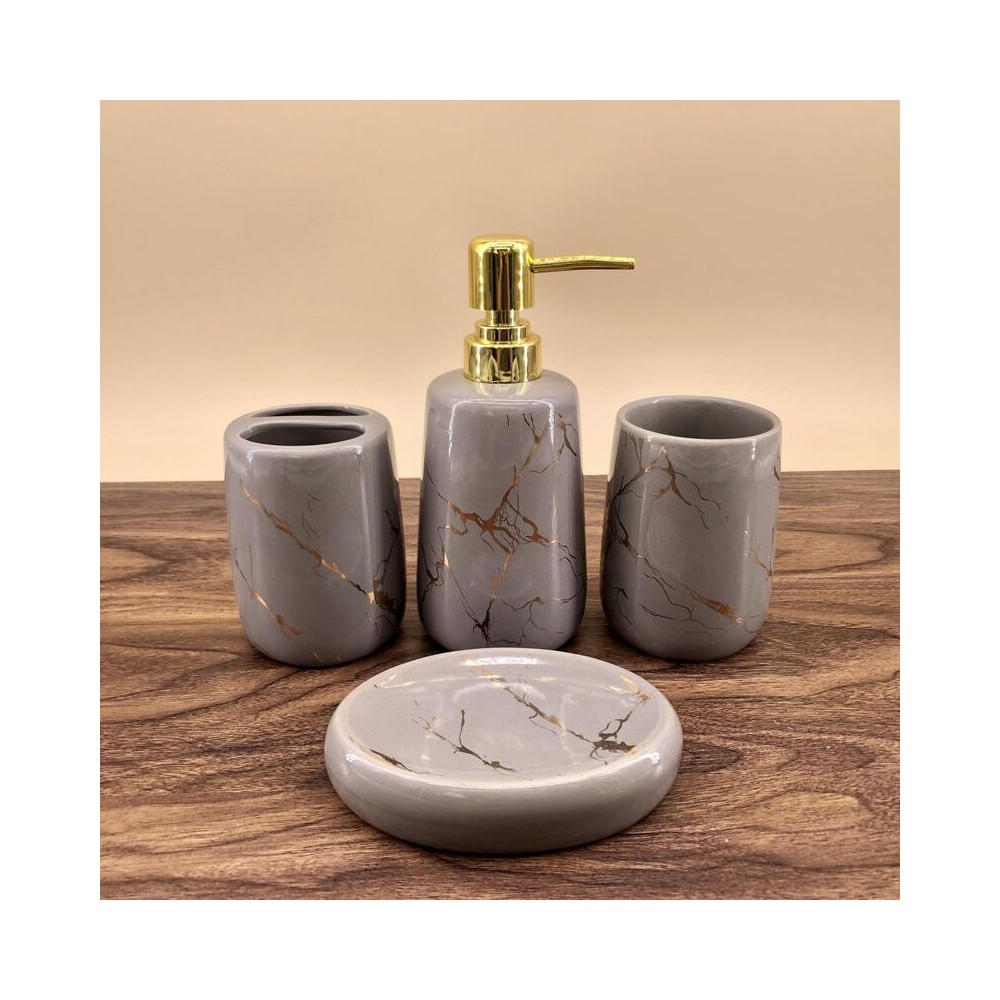 juego de baño 4 pzs , dispensador jabón líquido, vaso agua, portacepillos, jabonera barra.