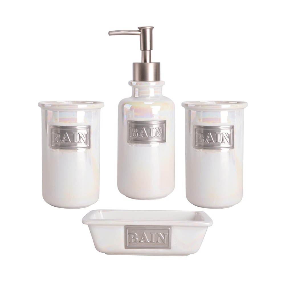juego de baño 4 pzs , dispensador jabón líquido, vaso agua, portacepillos, jabonera barra.