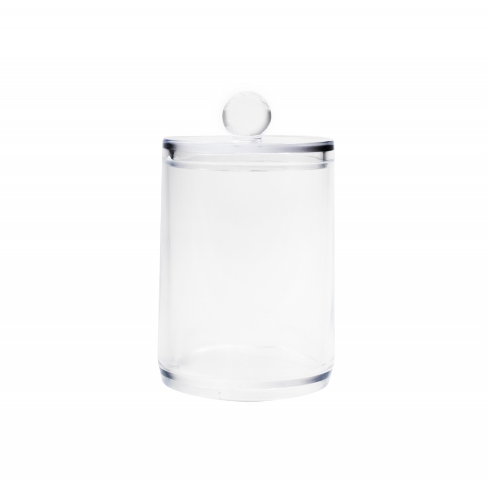 Algodonera Cilíndrica de Acrílico: Aunque su nombre indique su uso para almacenar algodón, también se utiliza para cualquier elemento que se quiera guardar en él