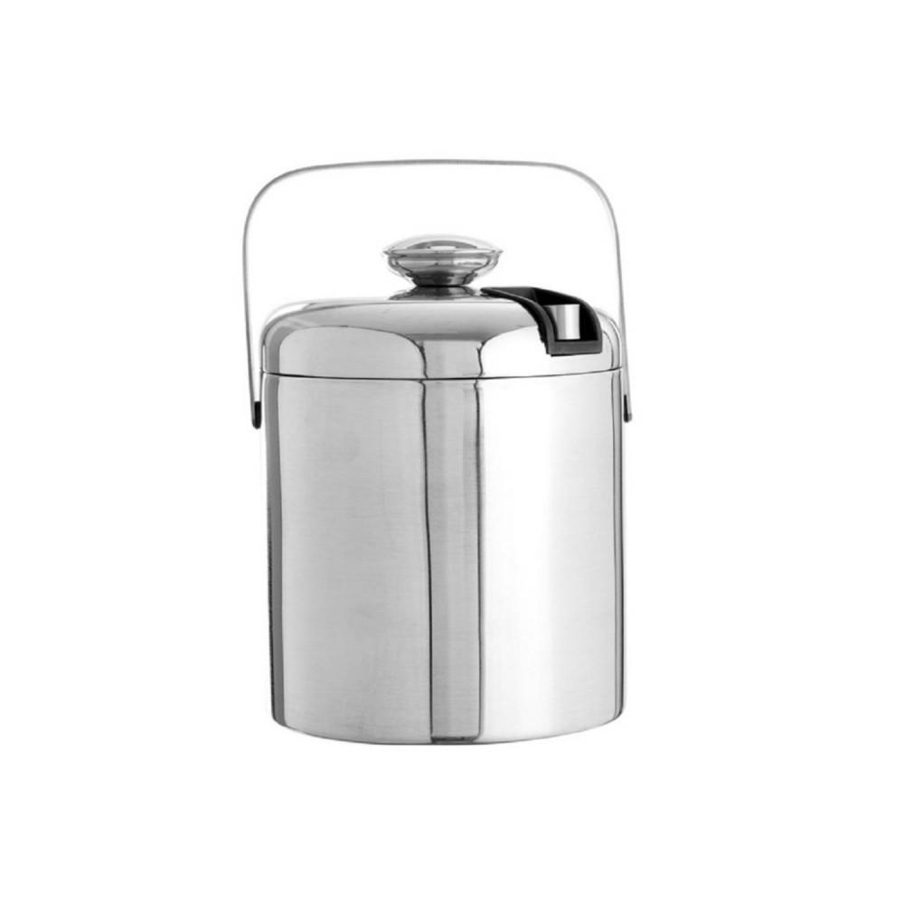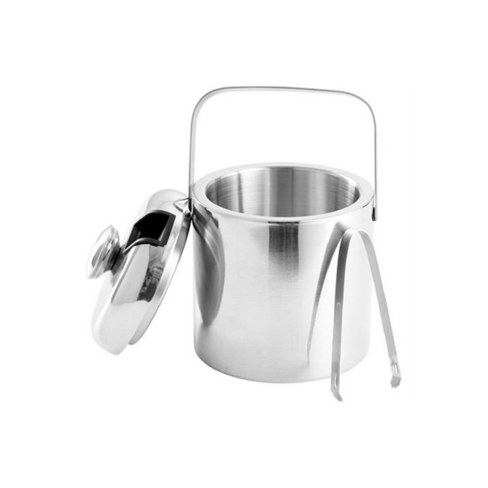 Hielera con tapa y pinzas de acero inoxidable.