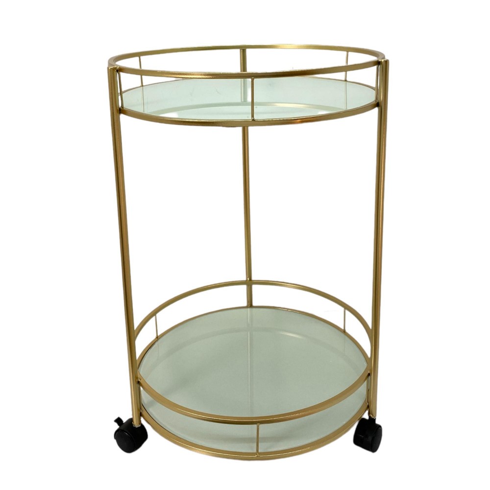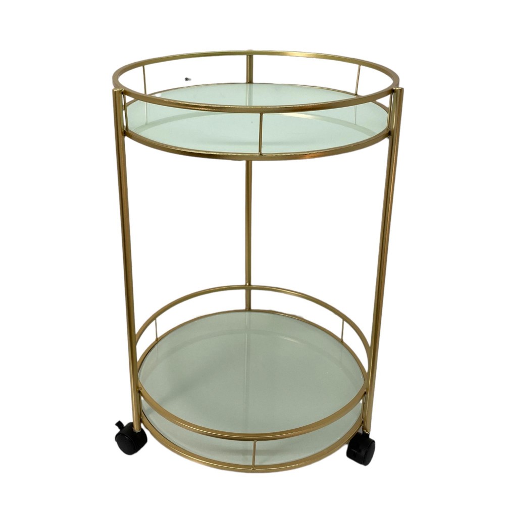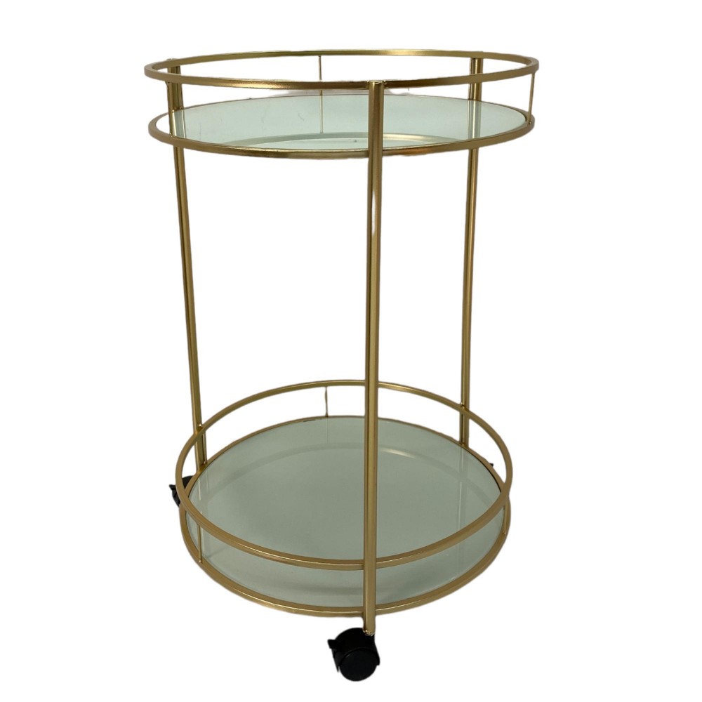 Carro bar metálico, dorado, con ruedas giratorias para transportar,cubiertas de espejo.