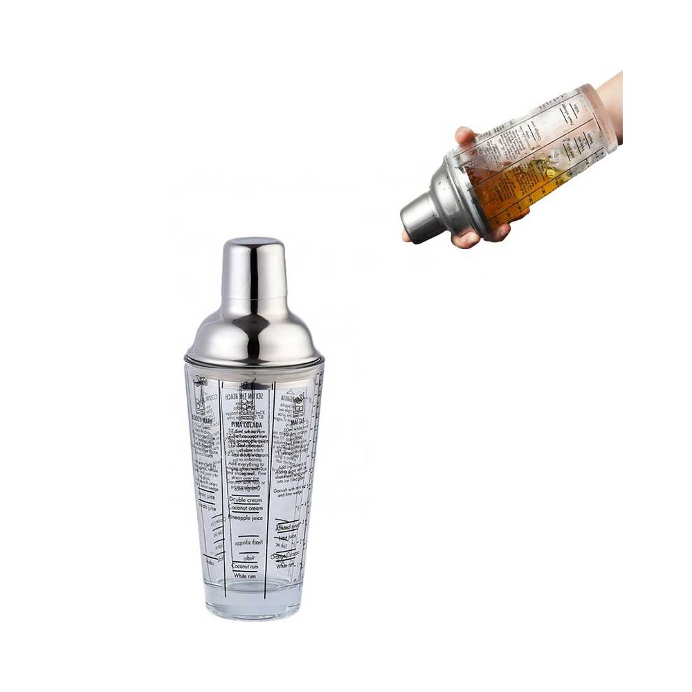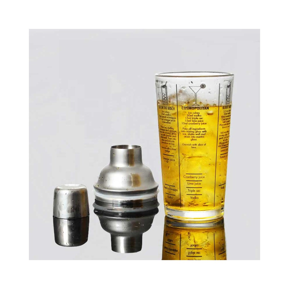 Coctelera 400cc.Vienen grabados en el vidrio 6 diferentes recetas de tragos.