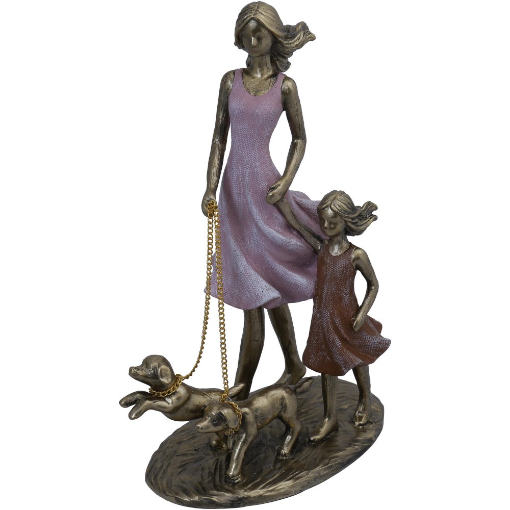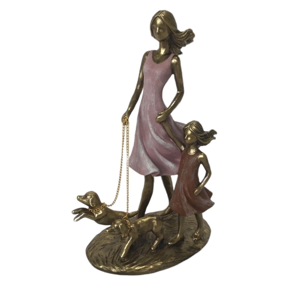 bellísima figura madre e hija paseando a sus mascotas .