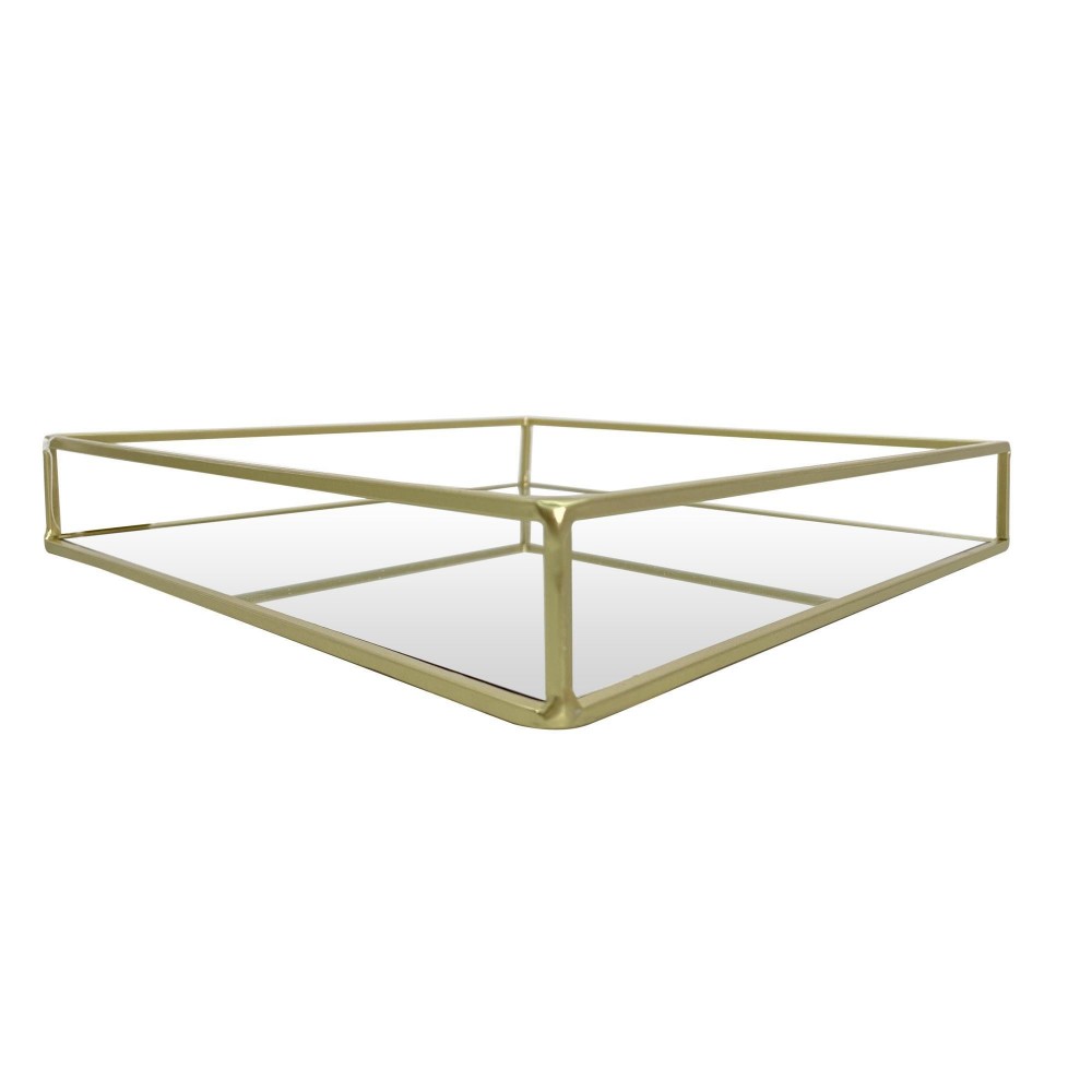 Bandeja decorativa y funcional que se caracteriza por su acabado dorado y su diseño elegante.