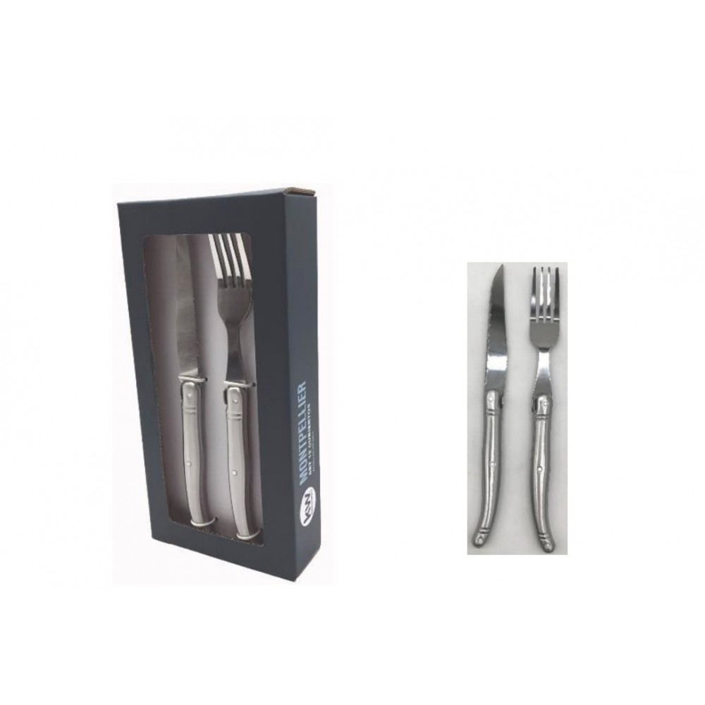 set doce servicios de asado, seis tenedores y seis cuchillos.
