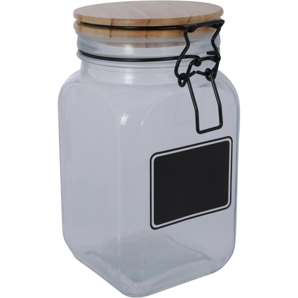 frasco c/ tapa a presión , 1.200 ml , con etiqueta negra en donde podras poner el nombre del producto que desees guardar.