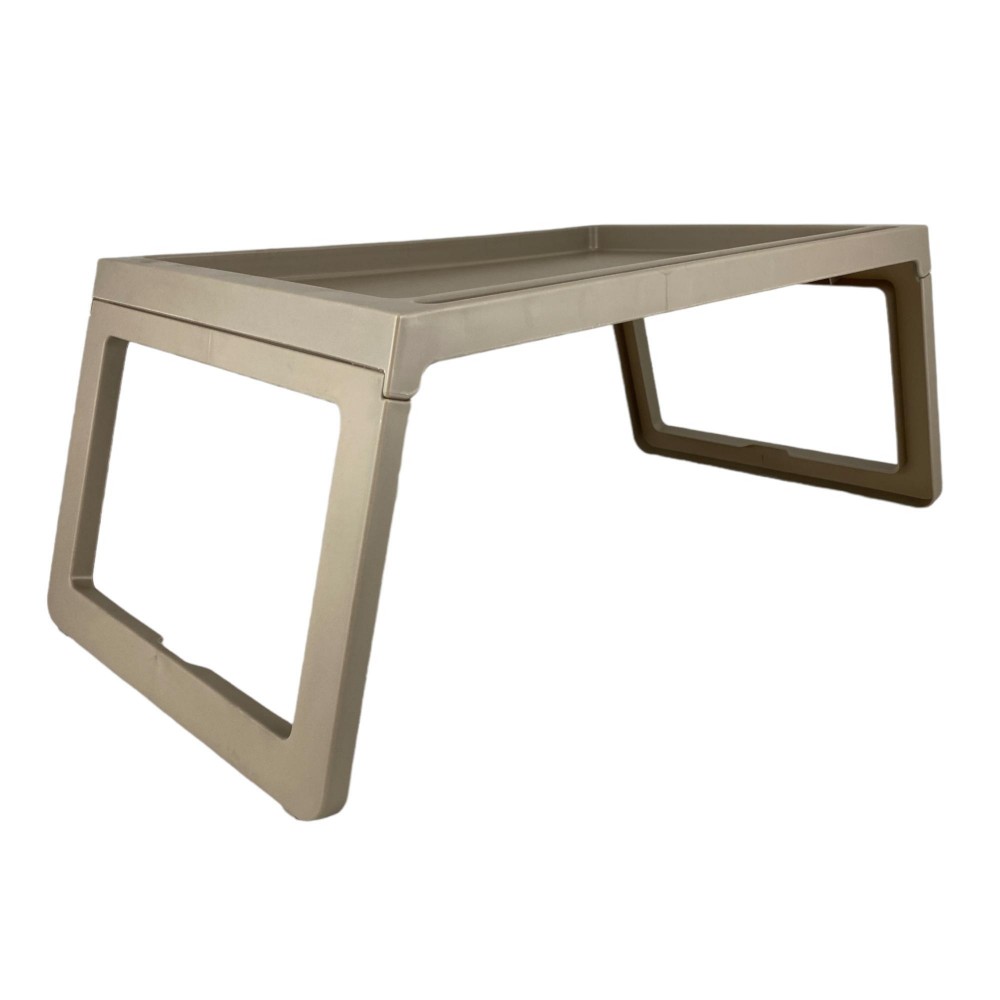 Bandeja plegable con dos patas que se ajustan muy bien y forman una mesita,tamaño ideal para llevar un rico desayuno a la cama.