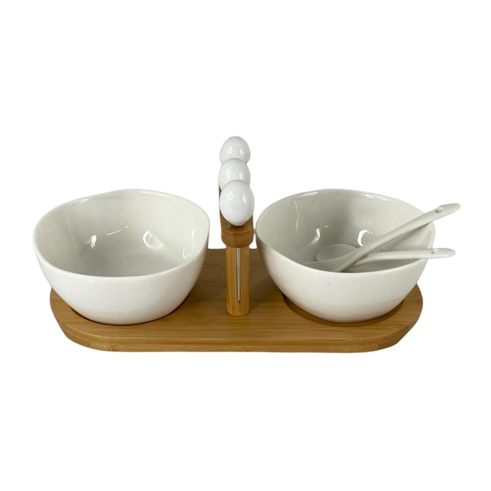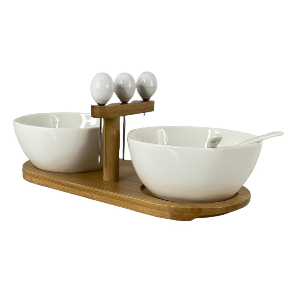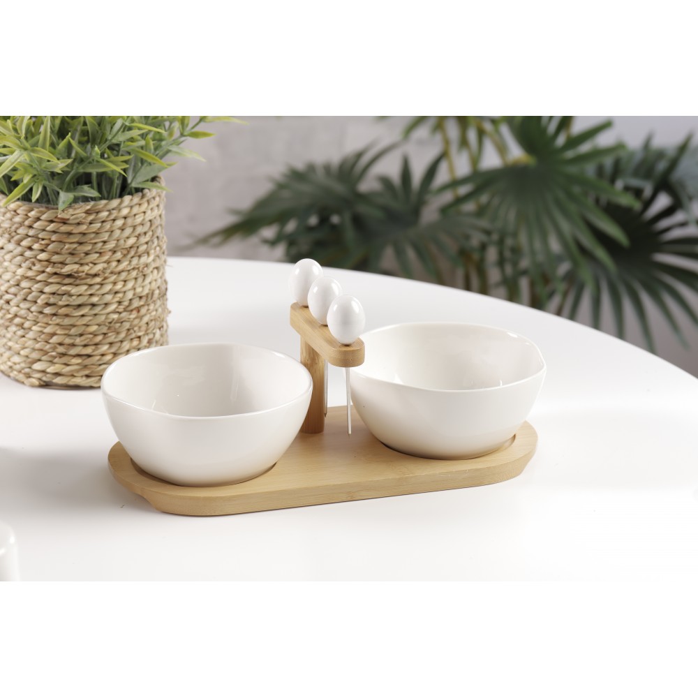 set para dips , incluye dos pocillos, dos cucharas , tres pinchos y disfruta de tus salsas favoritas.